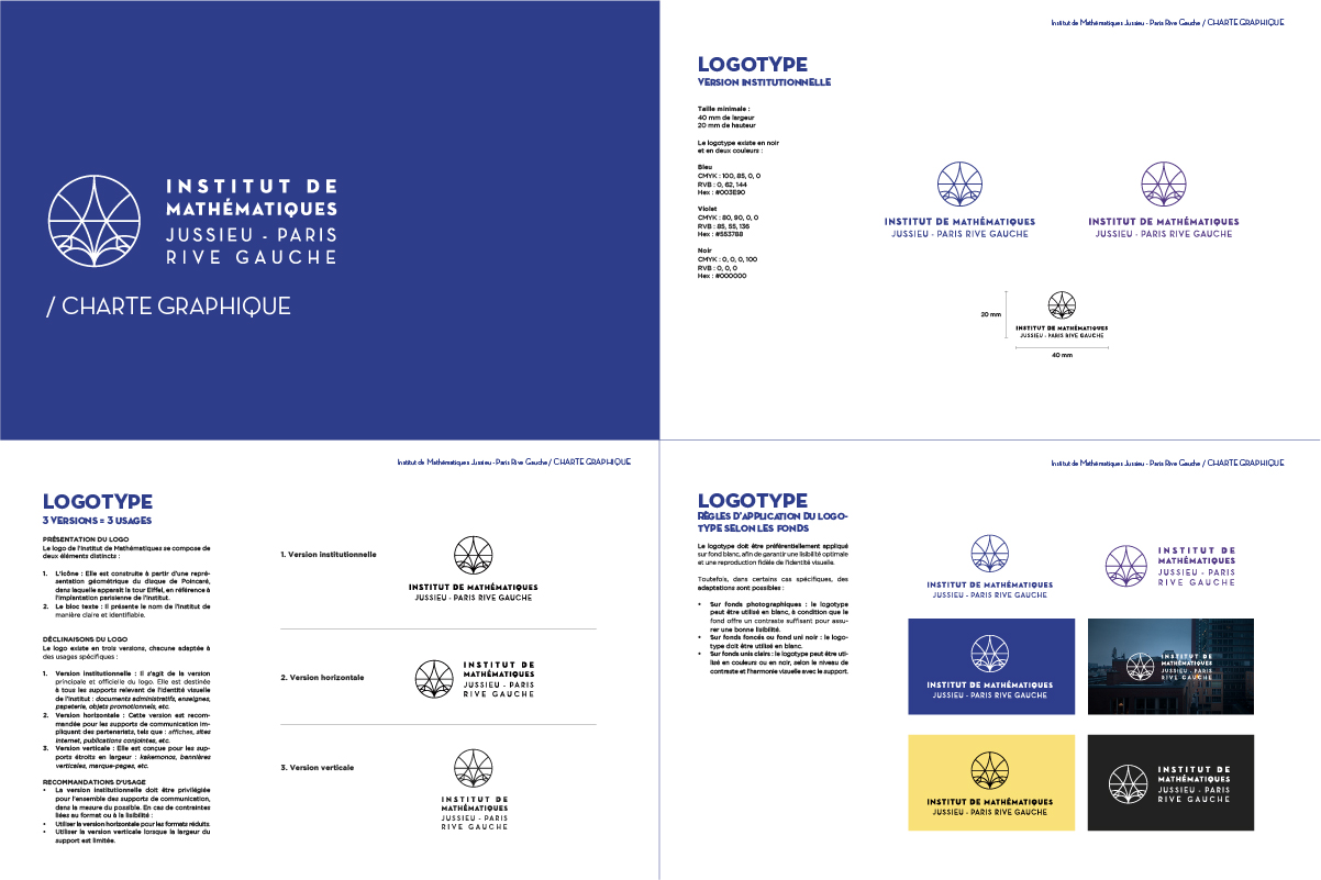 Nous avons dessiné la nouvelle identité de l’Institut de Mathématiques de Jussieu | Paris Rive Gauche [IMJ-PRG]. Le logo inscrit la tour Eiffel dans les arcs de cercle de la figure géométrique du disque de Poincaré. L’IMJ-PRG est un labo de mathématiques fondamentales parisien rattaché à 3 tutelles : CNRS, Sorbonne Université et Université Paris Cité. Il est, à l’international, un symbole de l’excellence française en mathématiques. Il a obtenu en 2024 le célèbre prix Abel.