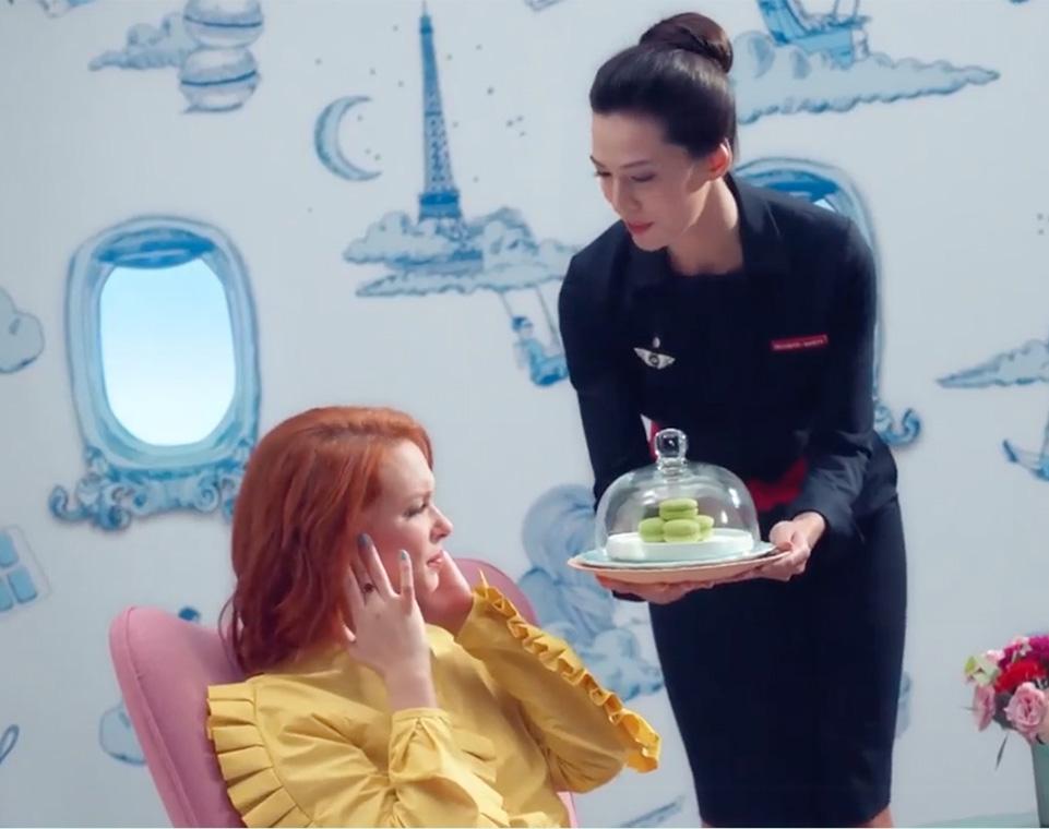 Nous avons dessiné une toile de Jouy pour la campagne publicitaire de lancement des gommes à mâcher de la compagnie aérienne Air France. Elle est composée de plusieurs scénettes autour des douceurs parisiennes, dans un univers surréaliste et poétique. Elle est le décor du clip réalisé par les flaminguettes pour BETC.